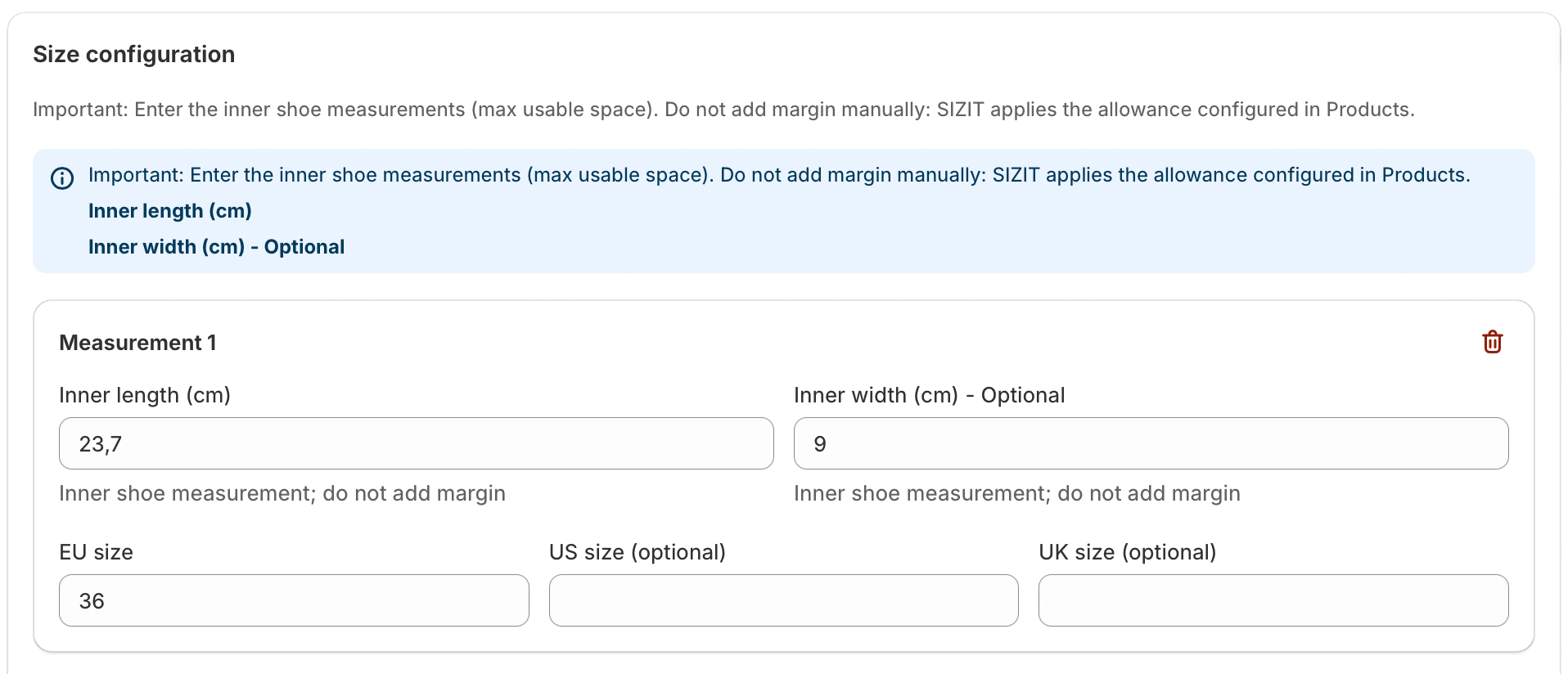 Once installed, SIZIT automatically detects all your products and synchronises their sizes. Simply add the measurements in the admin panel (you only need to do this for one product)